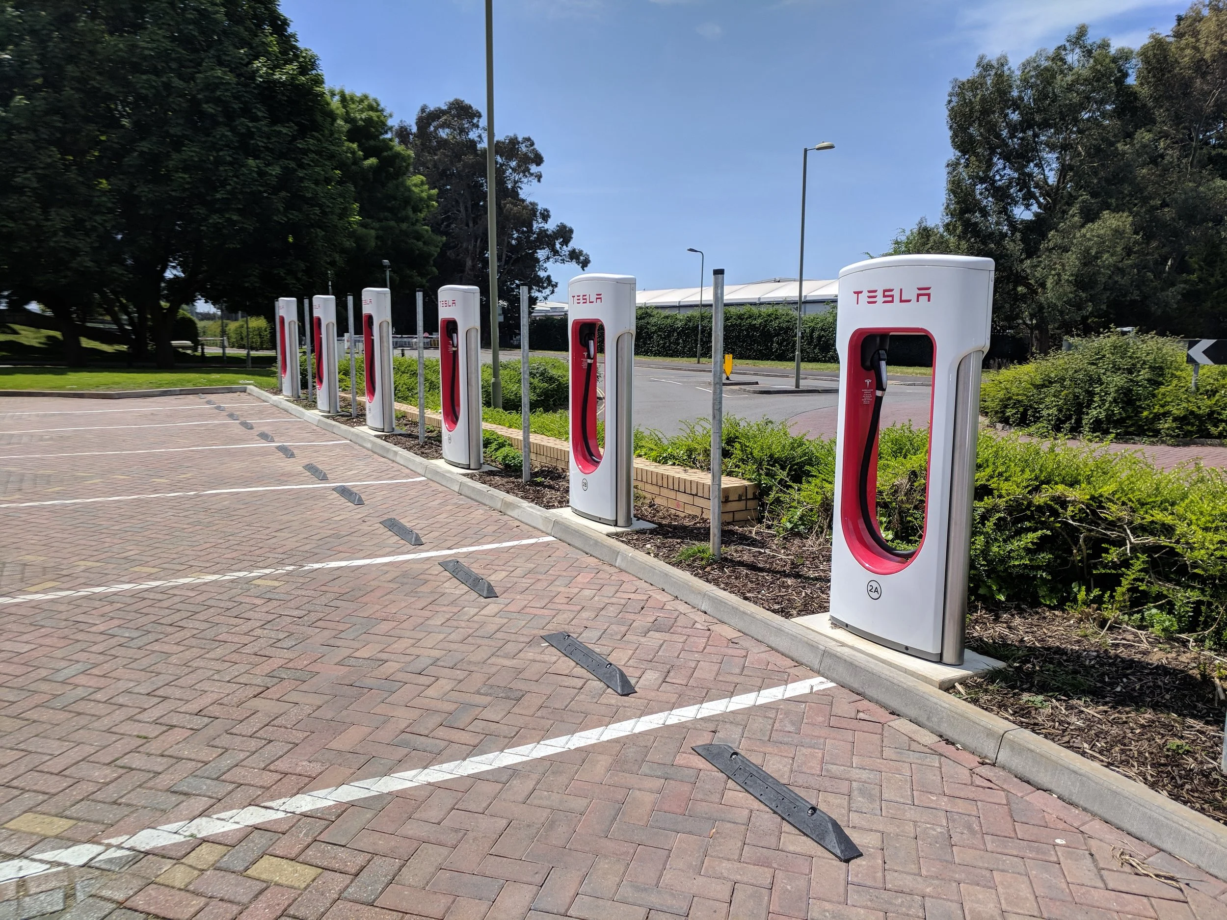 Tesla superchargers at Langstone Technology Park. Image taken by James O'Toole